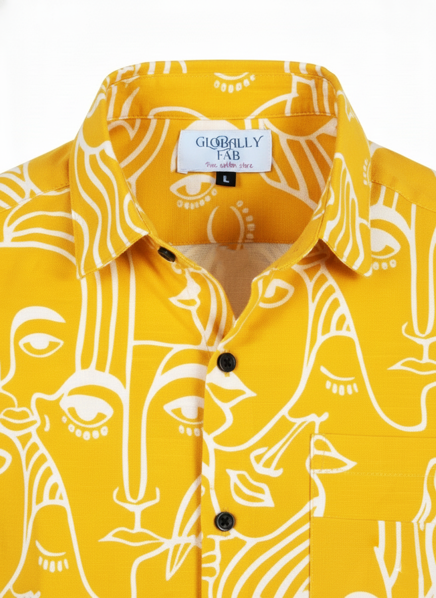 Mustard Yellow Abstract Face Art Men's Shirt